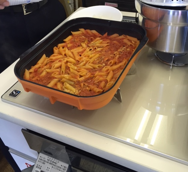 グリルを使い、今回はトマトソースのペンネとからあげを作ってみました。
